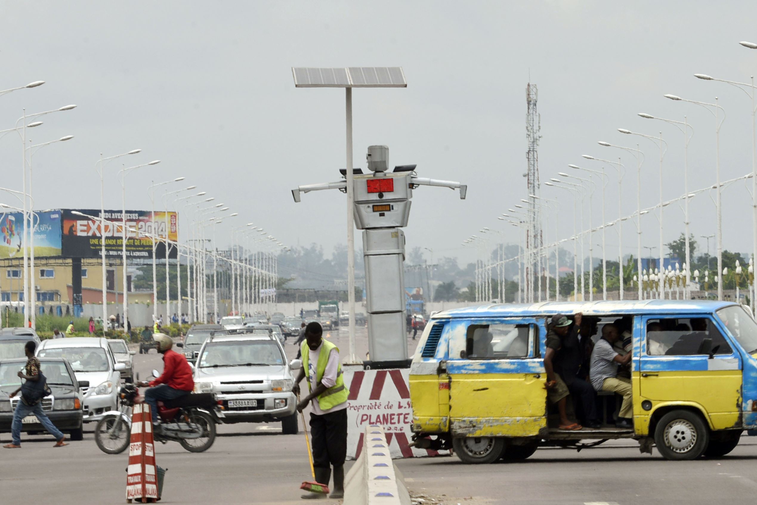 Robot pengatur lalu lintas di Kinshasa, Kongo. Robot itu bertugas membantu perempatan yang sibuk. Dia punya empat kamera yang bisa merekam.